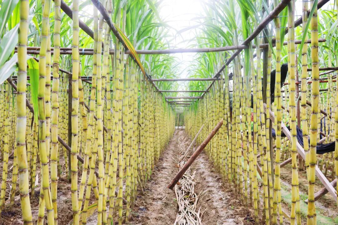连片种植的甘蔗郁郁葱葱、长势喜人