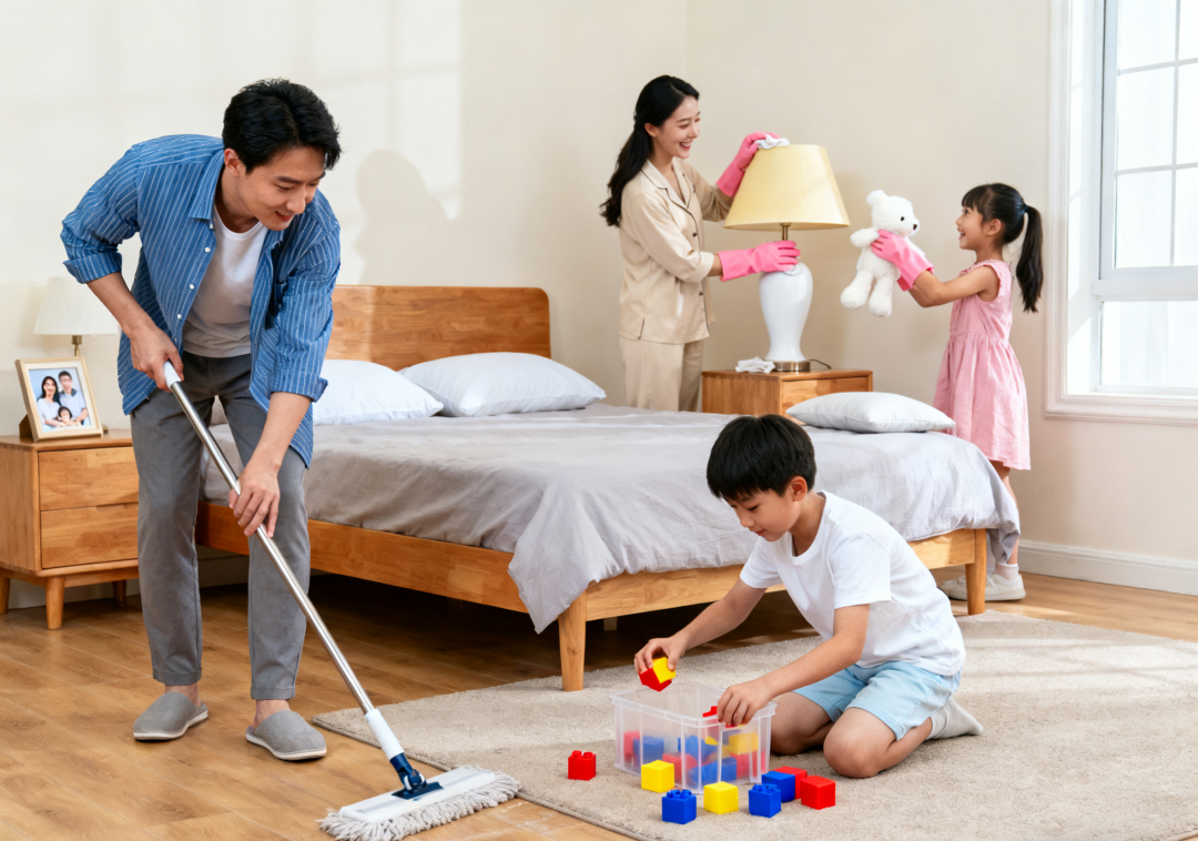 ※ 简化布置:尽量不使用地毯、厚重窗帘和毛绒玩具,这些都是尘螨的“安乐窝”。