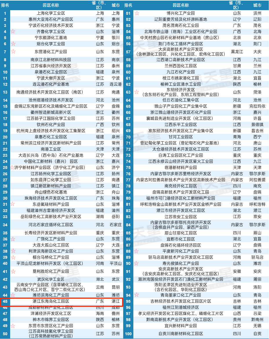 2025化工园区综合竞争力百强榜单