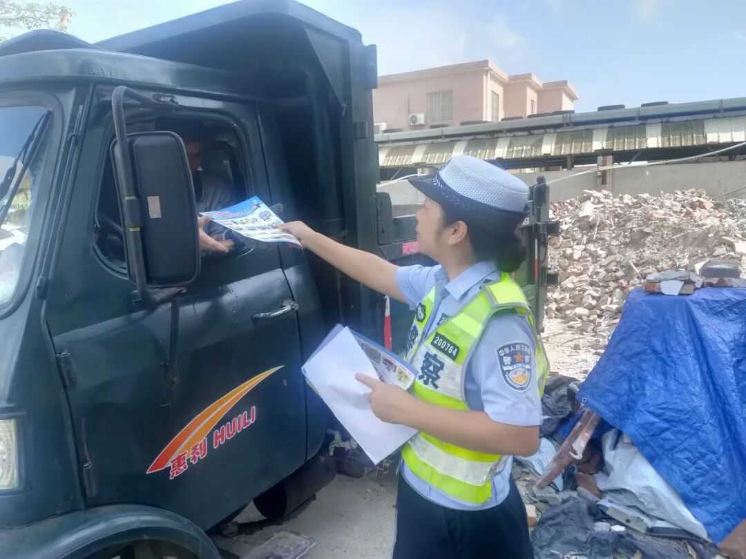 10月10日,阳江交警前往该工地进行普法宣传,并向该工地负责人及驾驶人员发放宣传单张,面对面讲解货车安全行驶知识。