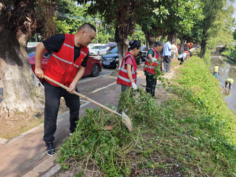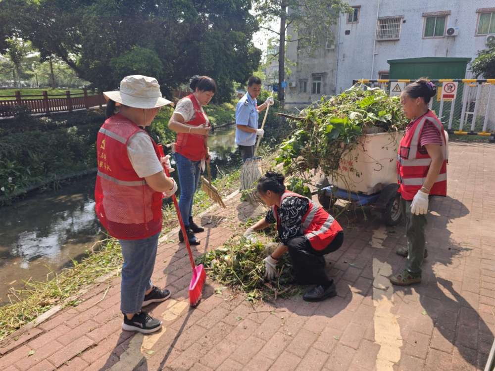 10月8日上午,为筑牢病媒生物防制屏障,大石街积极参与爱国卫生运动统一行动。行动在会江支涌周边区域展开,志愿者对会江支涌旁生长过高的花丛进行修整,过高的花丛不仅影响环境美观,更容易成为蚊虫藏匿与孳生的温床。党员志愿者认真排查花丛下方的垃圾和积水容器,将隐藏在花丛深处的各类垃圾彻底清理干净,从源头上切断蚊虫繁殖链。