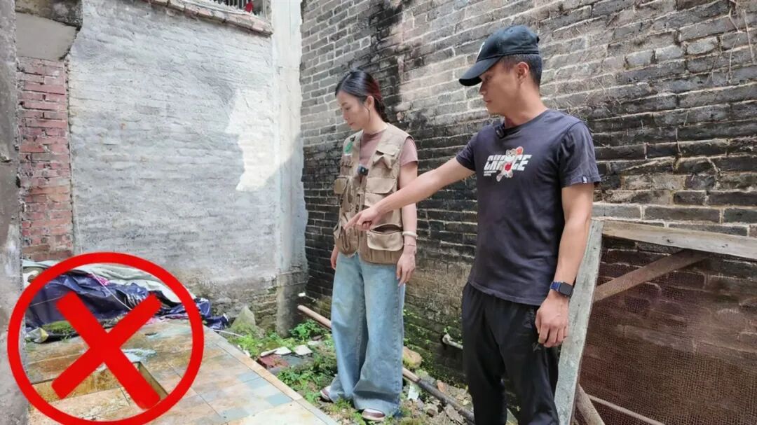 然而,在两栋房屋之间的冷巷中,一处露天洗手池却暴露出管理盲区。洗手池周边地面附着湿滑青苔,边缘散落积水的塑料布,墙脚堆积的建筑垃圾形成潮湿环境,成为蚊虫孳生的温床。