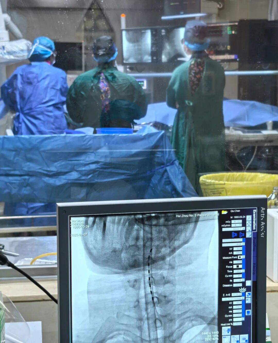在 DSA 透视引导下,团队顺利为患者完成颈3-胸3阶段脊髓刺激电极植入术。电极植入后,通过术中电生理监测确认电极位置准确、刺激效果良好。患者手术顺利,目前正持续接受康复治疗与电刺激参数调整,以期在电刺激与康复治疗的协同作用下,为神经功能恢复创造更多可能。