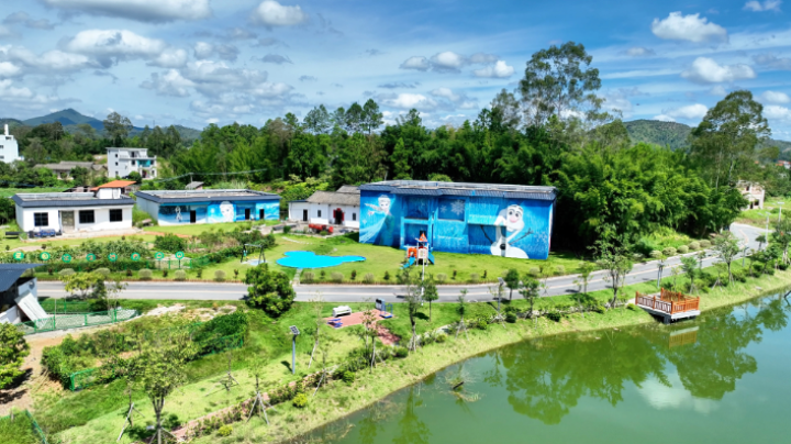 在蓝塘镇砂塘村,一个绿美生态小公园成了村民们的“心头好”。碧波微漾的水塘,干净整洁的步道在细叶榕、香樟树的绿荫环抱下延伸,休闲桌凳、健身器材等设施一应俱全。尤其引人注目的是充满童趣的冰雪公主艺术墙绘和亲子沙池,孩童们在此嬉戏玩耍,欢声笑语不断。