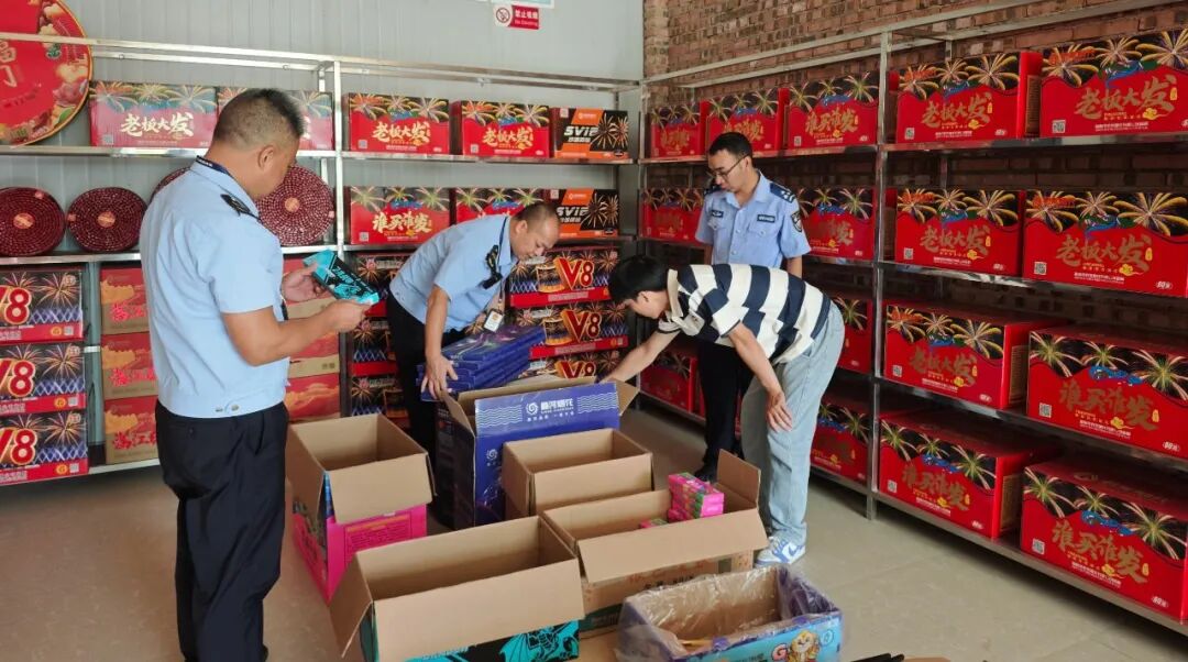 检查人员严格核查是否存在非法储存、销售超标或伪劣产品行为,坚决杜绝“三无”产品流入市场;细致检查消防器材配备与应急通道状况,对发现的问题立行立改;认真核对经营许可资质,对无证经营、超范围经营行为依法处置,切实从源头管控风险。