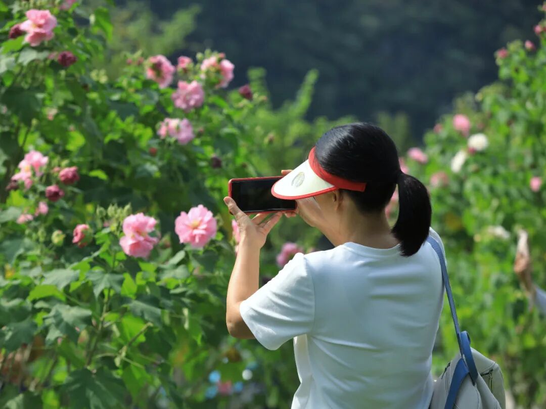 在这片粉色花海里打卡拍照,