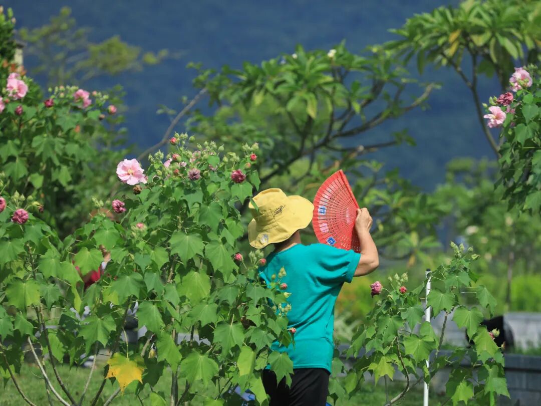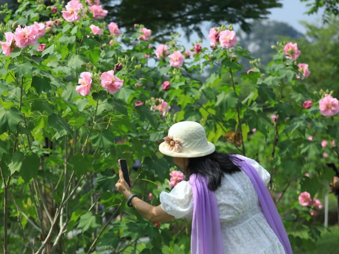 满树粉色的芙蓉花便跟着轻轻晃动。