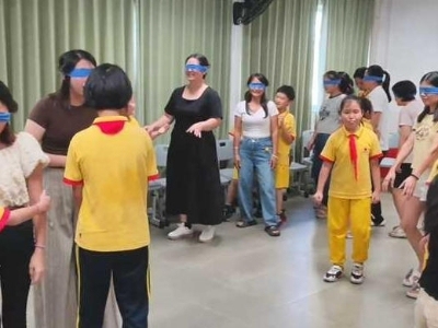 活动邀请了韶关学院教育科学学院心理学系主任王礼申副教授与粤北第三人民医院高级心理咨询师肖岭共同指导,将阅读与心理辅导有机融合,设计并带领整场活动。活动在导师舒缓温和的引导下,20对亲子沉浸在精心设计的互动游戏中。在“花样接龙”环节,孩子们亲昵地拉着家长的手撒娇,家长轻抚肩膀,亲情自然流露;在“信任行走”时,蒙住双眼的家长,在孩子专注引导下稳步前行,亲子角色互换间建立起深厚信任;在“书签祝福”环节,亲子间彼此写下最深情的鼓励与祝愿。