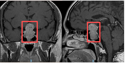 术前垂体增强磁共振可见巨大哑铃型肿瘤
