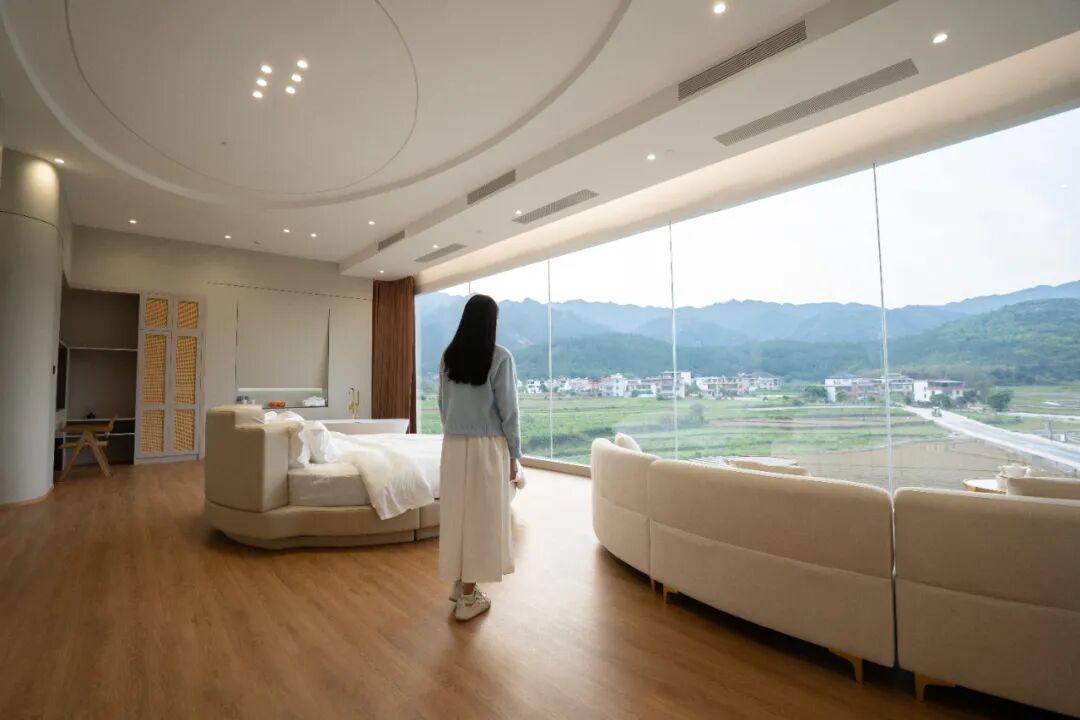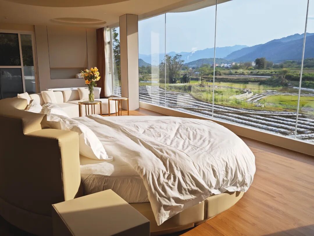 玩了一天,该找个地方“慢下来”了。位于九峰山脚下的蜜峰民宿,会用地中海风情给你一个惊喜:白色奶油风外墙配通透明亮的落地窗,窗外就是无边稻田,随手一拍都是大片。