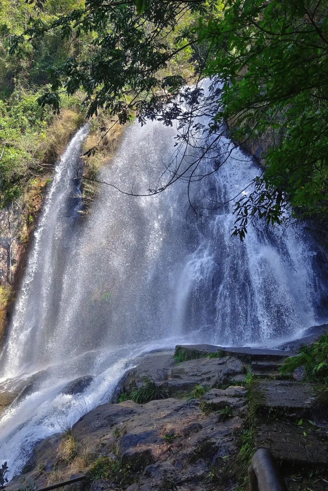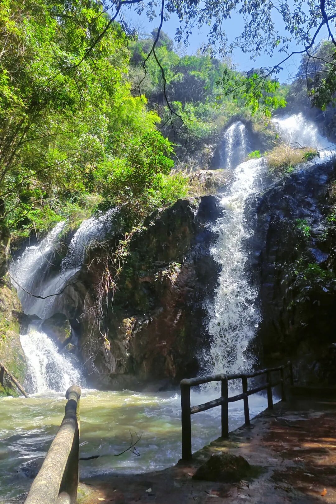 登上观景台俯瞰,瀑布群在翠竹间若隐若现,深呼吸,负氧离子瞬间灌满胸腔,这里不愧是“天然大氧吧”,连空气都好像带着清甜。