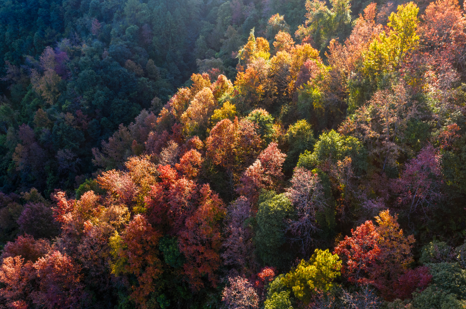 登上云髻山欣赏层林尽染的壮丽秋色,山间溪流在奇石间穿梭,形成无数天然水潭,藏着最原始的森林密语。沿着“随山转、依水行”的步道上行,时而穿越茂密的常绿阔叶林,时而踏过清澈的溪涧,“空山不见人,但闻人语响”的意境在此完美呈现。