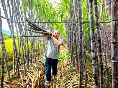 正在地里收割甘蔗的种植户张炳文一边麻利地用砍刀砍断蔗秆,一边告诉记者,今年甘蔗长得好,每亩产量也高。“今年的雨水和阳光都很充足,黑皮甘蔗特别清甜,每亩产量约有12000到15000斤左右,每亩收入有一万多元。”