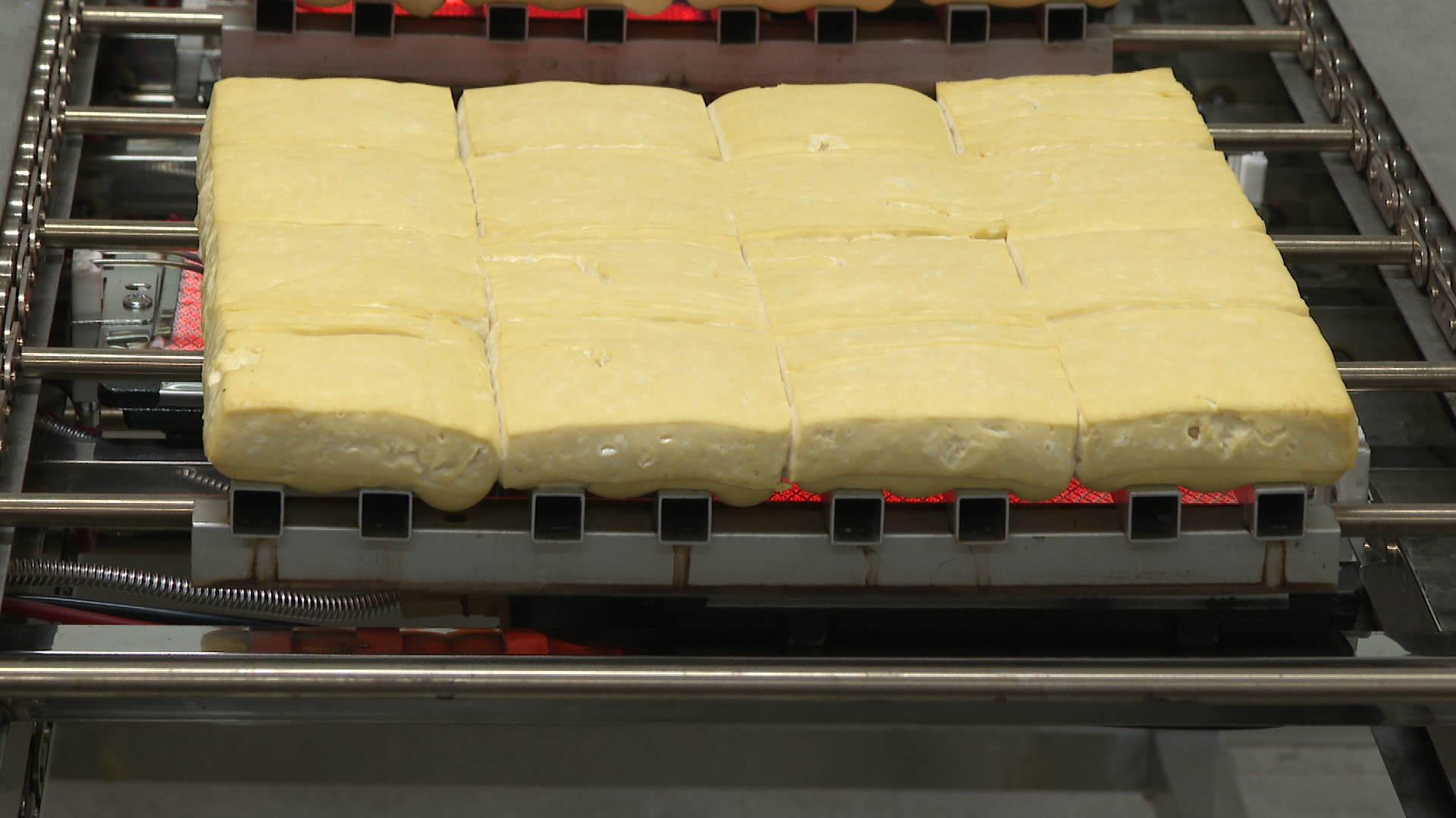 走进龙川县车田山水豆腐产业园,映入眼帘的是标准化生产车间,不再是过去小作坊里的“一人一磨、一锅一灶”,取而代之的是全自动化生产线的精准作业——浸泡、磨浆、煮浆、点卤、压制成型、烘烤等一道道工序环环相扣,一块块品质稳定、豆香浓郁的车田豆腐从生产线上源源不断下线,即将搭乘物流快车发往全国市场。“车田豆腐在大湾区是非常有名气产品,我们致力于把传统工艺用现代化手段把最原始东西再挖掘出来,一个是本地的好水,第二个是本地的好豆,第三个是本地的工艺。”广东车田山水豆腐食品科技有限公司品牌及市场营销总监谢忠党说。
