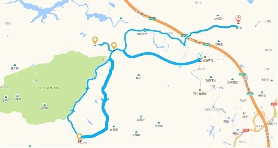 特点:途经古道环和绿水环。这是一条穿越历史与湖光山色的路线。在羊石顶寻找金羊石,探寻广州“五羊传说”的起源,感受独特的文化底蕴,在沿途湖光山色中,体验自然的壮美,给您带来穿越时空的感官盛宴。