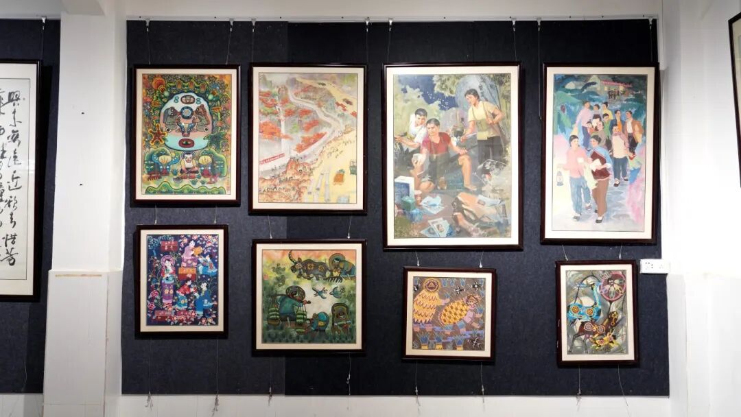 除了红色主题画作,该展厅还首次公开展出了龙门农民画创始人谭池发先生的部分珍贵遗作。这些画作以浓郁的乡土气息、鲜明的色彩语言见长,生动描绘了龙门地区的田园风光与民俗生活。笔墨间饱含艺术家对家乡山水的赤子深情,不仅是植根民间的艺术瑰宝,更是见证时代变迁、连接乡土情感的生动载体。