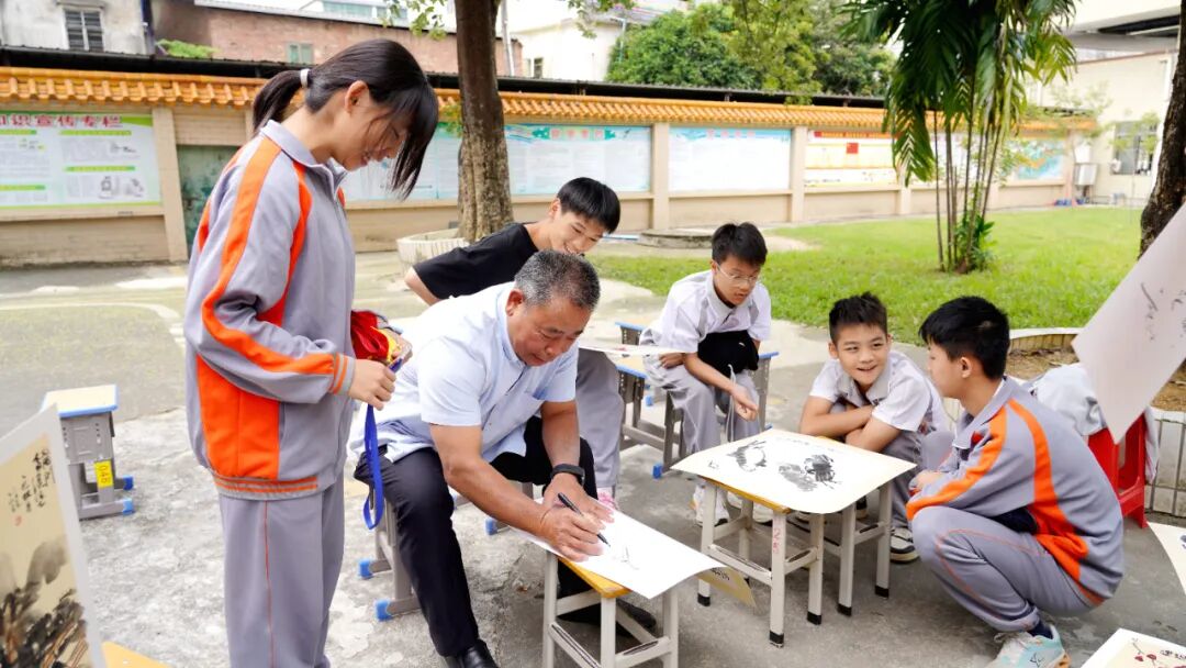 沙迳中学校长袁春琼介绍,举办本次艺术展的构想源于学校五年规划中的校本课程开发目标,旨在通过艺术之美启迪学生心智,厚植文化底蕴。未来,展厅将融合作品展示、教学实践与科创探索,成为集校史梳理、未来展望于一体的多功能空间。这一设计正呼应了“五艺并举、科技教改”的当代教育理念,让美育扎根校园,让乡土情怀与红色基因在潜移默化中得到传承。