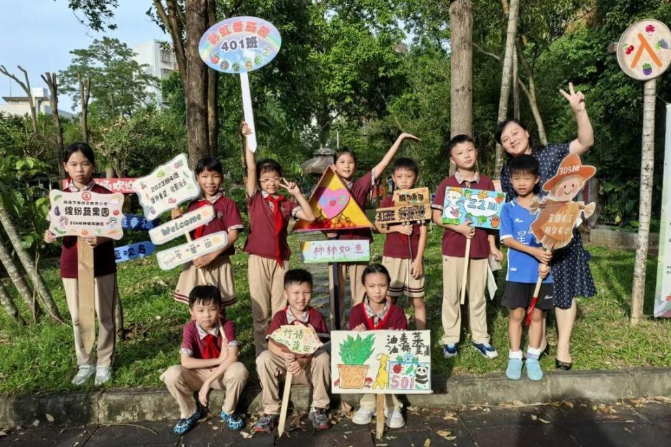 各班学生代表与家长顾问一同将一块块设计独特、富有班级特色的名牌竖立在菜地旁,这场以“小种子”为起点的劳动实践已悄然起航。在老师和家长顾问的悉心指导和“农场小管家”的精心照料下,“团团农场”必将硕果累累,而每颗在劳动中成长的“种子”,都将在未来绽放独特光芒。