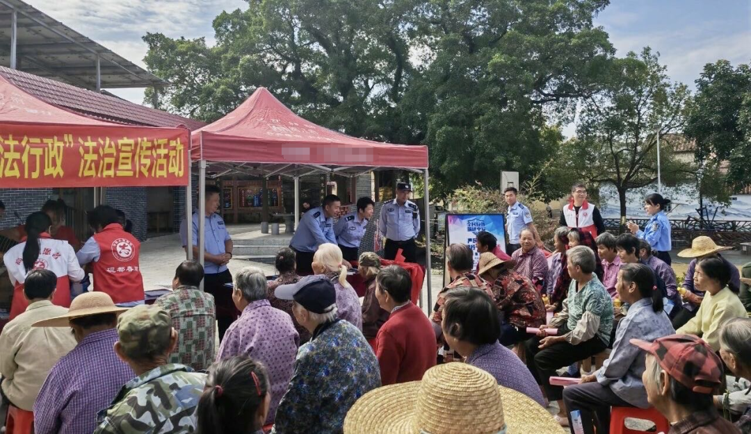 ▲ 在回龙镇大田塱村,民警结合本地真实案例,用通俗易懂语言讲解针常见诈骗手法。