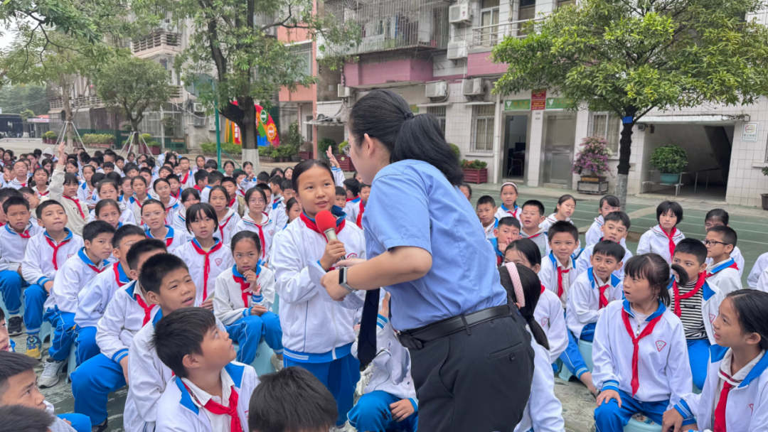 互动现场,抛出一个个紧贴学生生活的问题,同学们纷纷举手发言,踊跃分享遇到的类似情况,在交流讨论中,同学们逐渐掌握了辨别不良行为、拒绝不良诱惑的方法,学会了更多应对危险时正确求助方法。