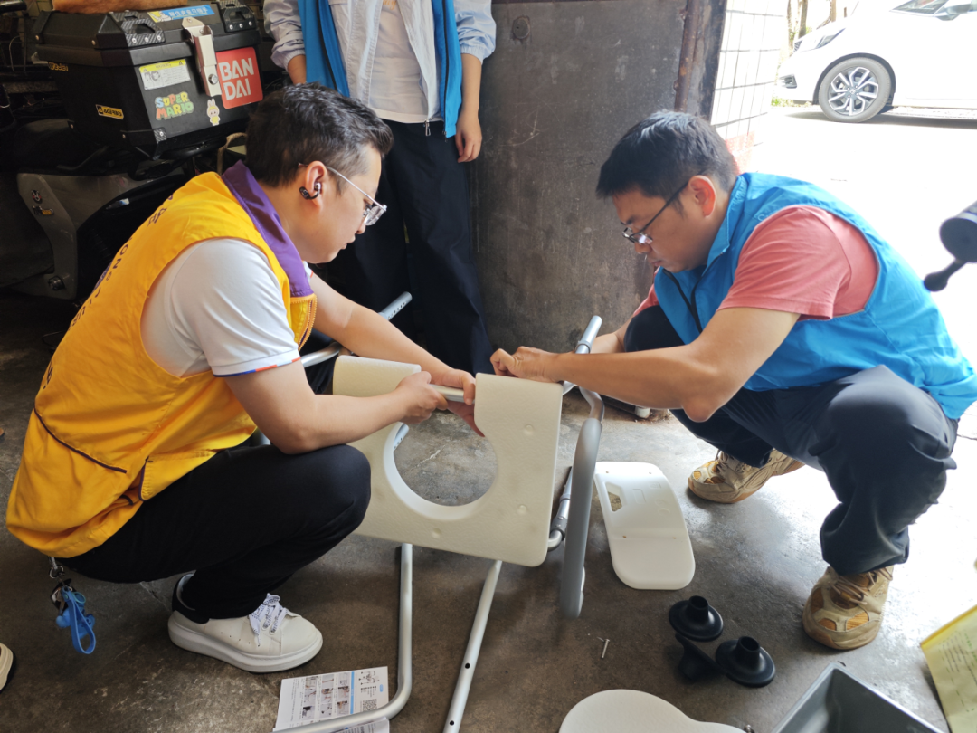 家住韦涌村的李婆婆,今年已85岁高龄。由于年迈腿脚不便,家中仍是传统的蹲厕,日常起居十分困难,拥有一把坐便椅成了她心头最迫切的愿望。在前期摸排中,跃明服务队了解到这一情况后,立即将李婆婆的需求列为本次服务的重点。活动当日,当会员们带着崭新的坐便椅来到李婆婆家中时,老人眼中充满了期待。大家不仅送上了慰问品,更立即动手为李婆婆安装好坐便椅,她紧紧握着会员的手,激动地说:“太感谢你们了!这下方便多了,真是解决了我的大难题!”