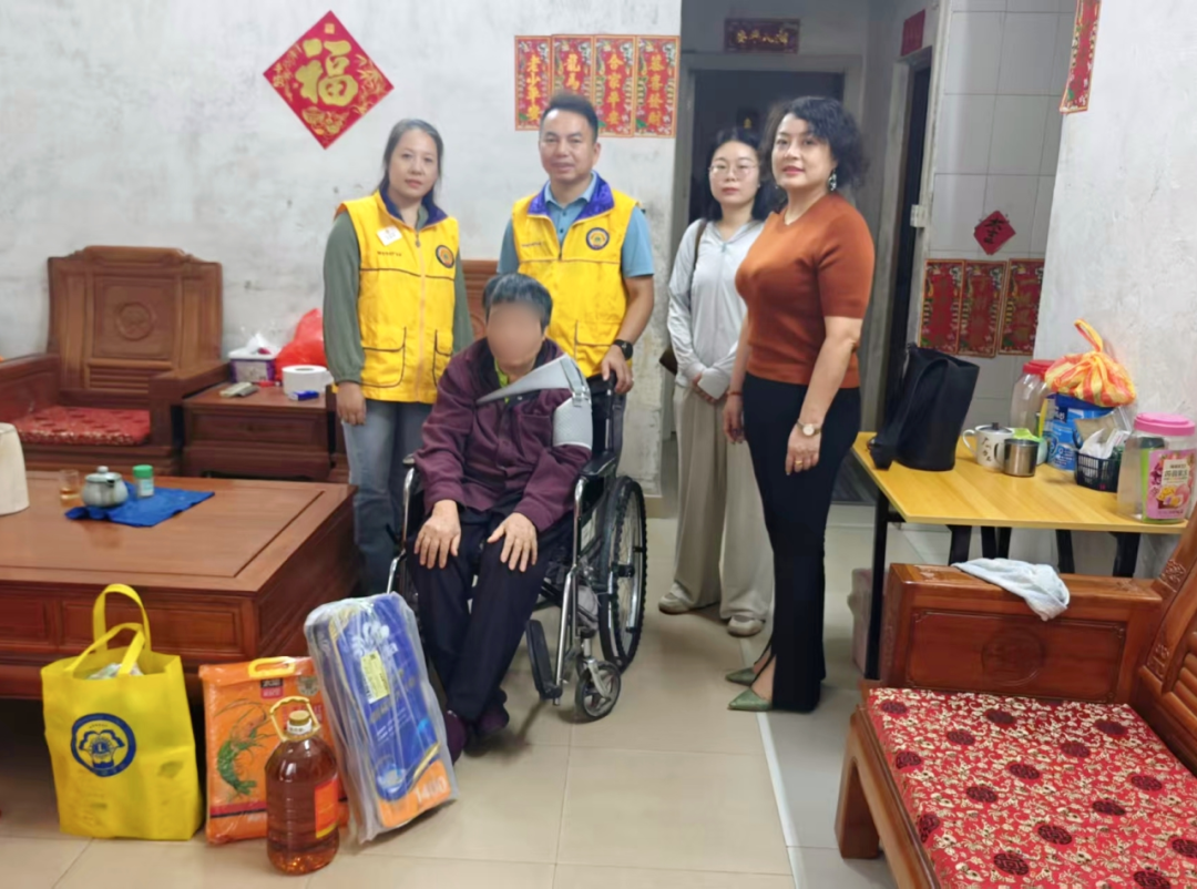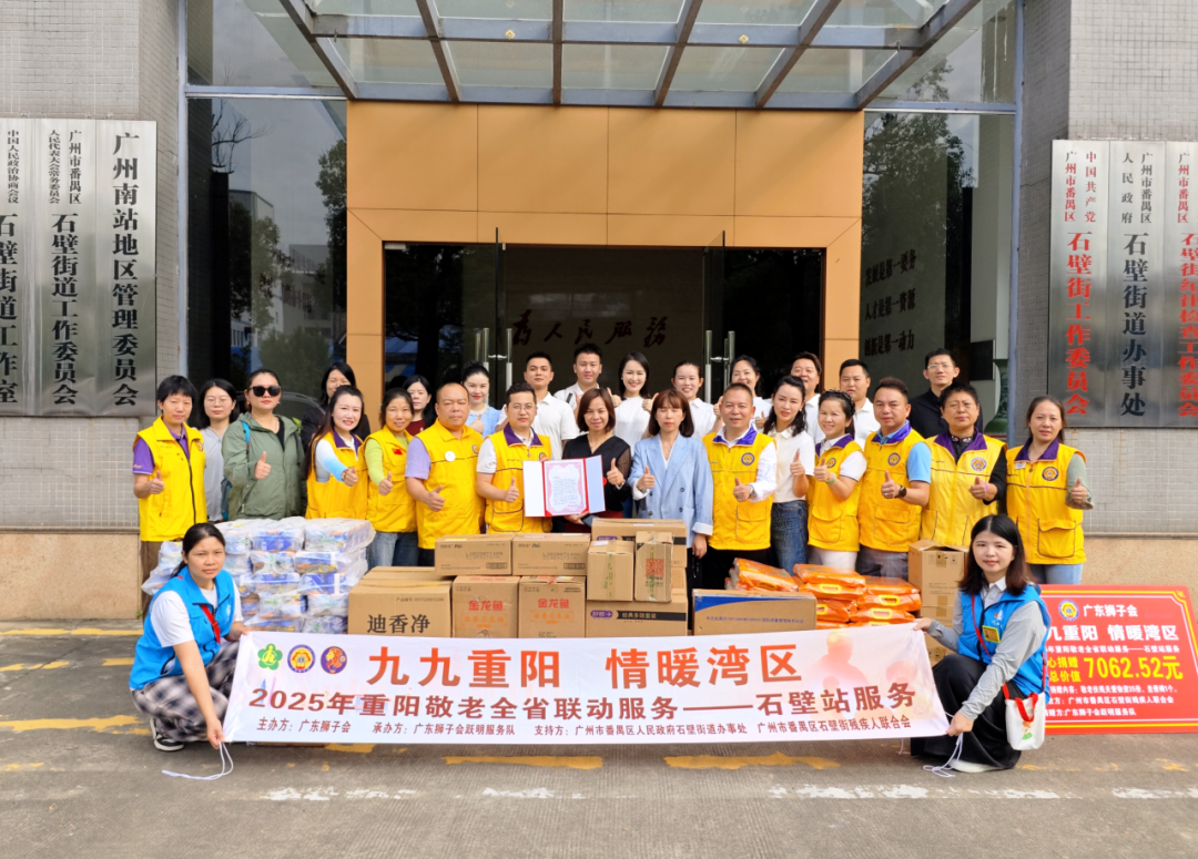 秋风送爽,爱满重阳。值中华民族传统敬老佳节“重阳节”之际,为积极响应广东狮子会“九九重阳·情暖湾区”2025年全省联动服务的号召,大力弘扬“尊老、敬老、爱老、助老”的传统美德,2025年10月30日上午,广东狮子会跃明服务队联合番禺区石壁街道办事处、石壁街残疾人联合会,共同开展了本次服务。跃明服务队、正道、和爱服务队的会员们与爱心人士们近30人兵分多路,深入石壁街9村1居,为35户孤寡、残疾及其他困境老年家庭送去了节日的祝福与温暖的关怀。