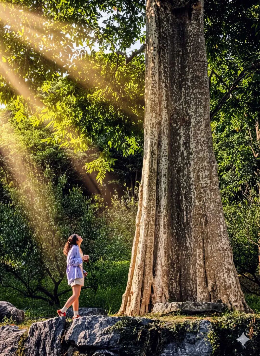 走进园区,满目苍翠,古树参天。其中一棵树龄约2200年的紫薇古树尤为引人注目,粗壮的树干需数人合力方能环抱。