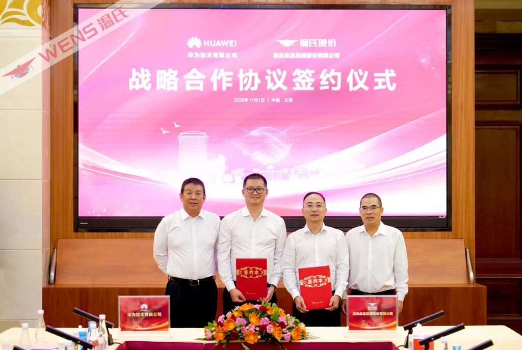 11月1日,温氏食品集团股份有限公司(以下简称“温氏股份”)与华为技术有限公司(以下简称“华为”)正式签署战略合作框架协议。