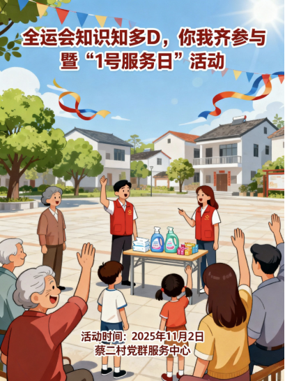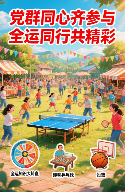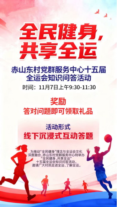 活动简介:活动将结合有奖问答、党员志愿服务等形式,在寓教于乐中普及全运会历史知识、比赛规则,激发村民群众关注体育、热爱运动、共建健康社区的热情。