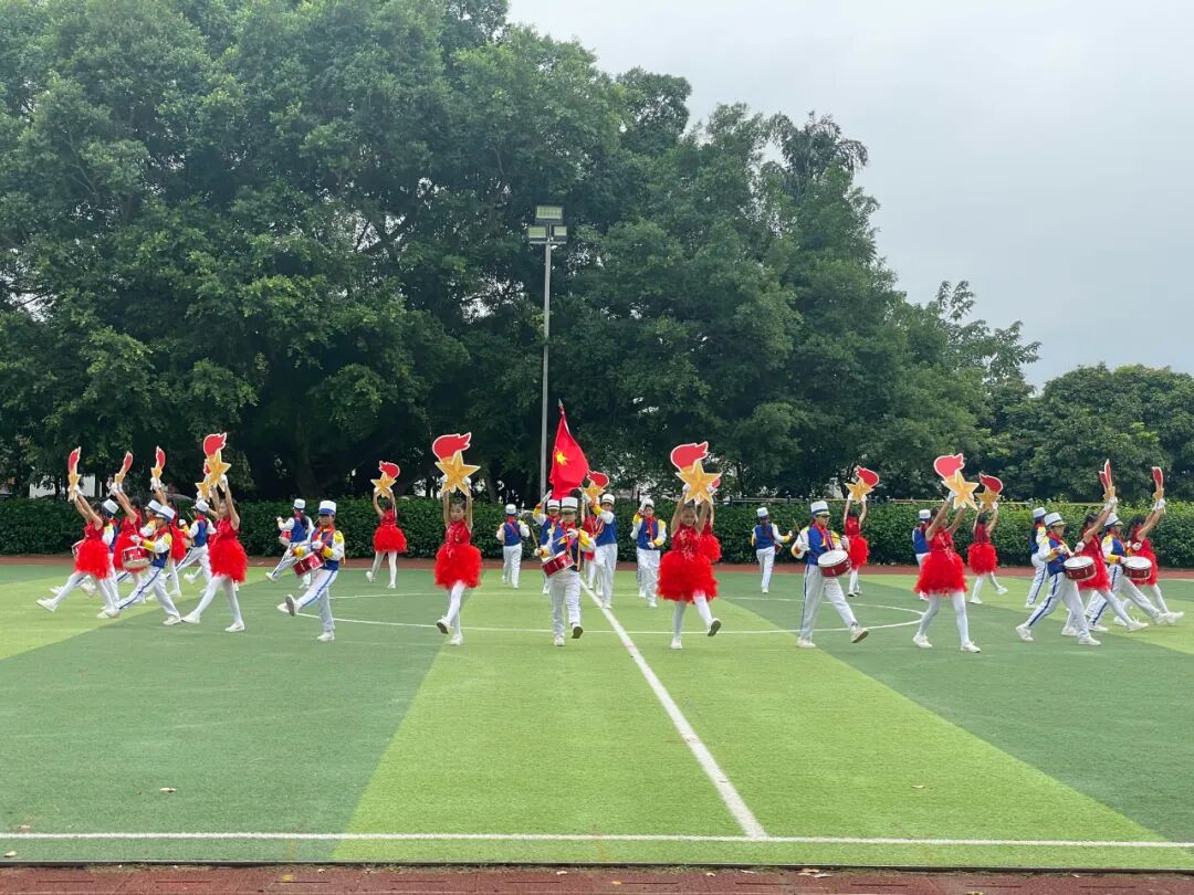 操场上,随着鼓号节奏响起,少先队员身着统一服装,精神抖擞、意气风发。他们随着指挥员手中指挥棒的划出开始展演,并不时变换队形,铿锵有力的鼓点、嘹亮激昂的号声瞬间响彻校园,精彩表演赢得师生和评委阵阵掌声。