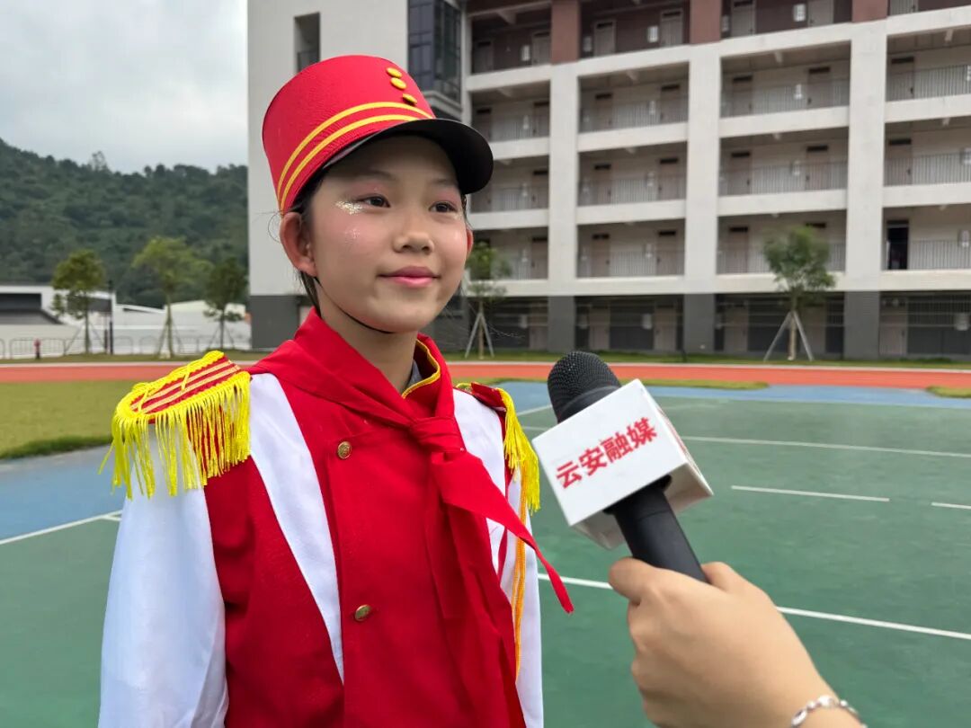 云安区鲲鹏第二小学学生 李紫玥:加入鼓号队后,我们经常要训练一个多小时,虽然很辛苦,但我们学会了团队合作。当我们队伍站在赛场上听到自己吹出的号声那么响亮,我感到无比自豪。
