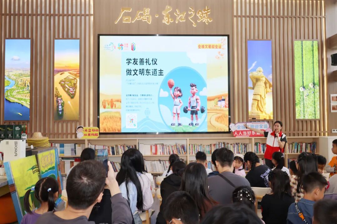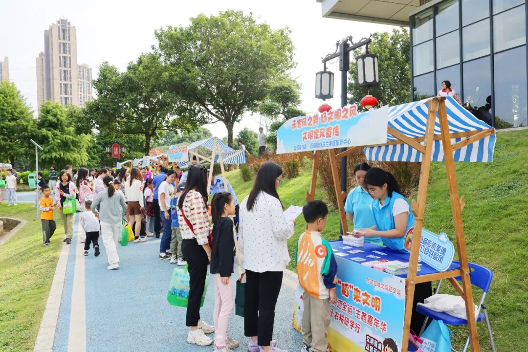 秋日的起航广场上,金色稻田翻浪。一场生动有趣的“智慧课堂”拉开了活动帷幕。石碣镇新时代文明实践中心社工围绕活动主题,生动讲解了《东莞市全域文明居民公约》的核心内容,深入阐释“文明餐桌”的重要意义,倡导大家争做文明居民、珍惜粮食、力行勤俭节约。现场还推广了“友善东莞”文明礼仪培训小程序,鼓励家长与孩子通过线上平台持续学习礼仪知识、参与互动,将文明意识的培养延伸至日常生活点滴。