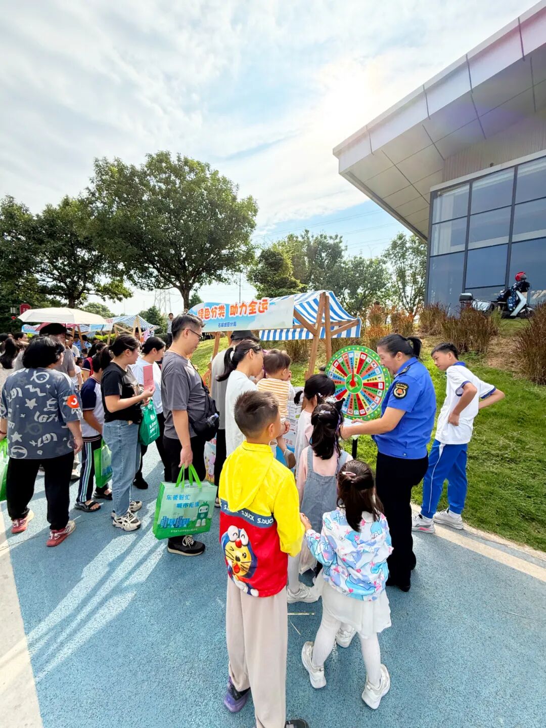 在“智慧小课堂”、文明主题摊位上