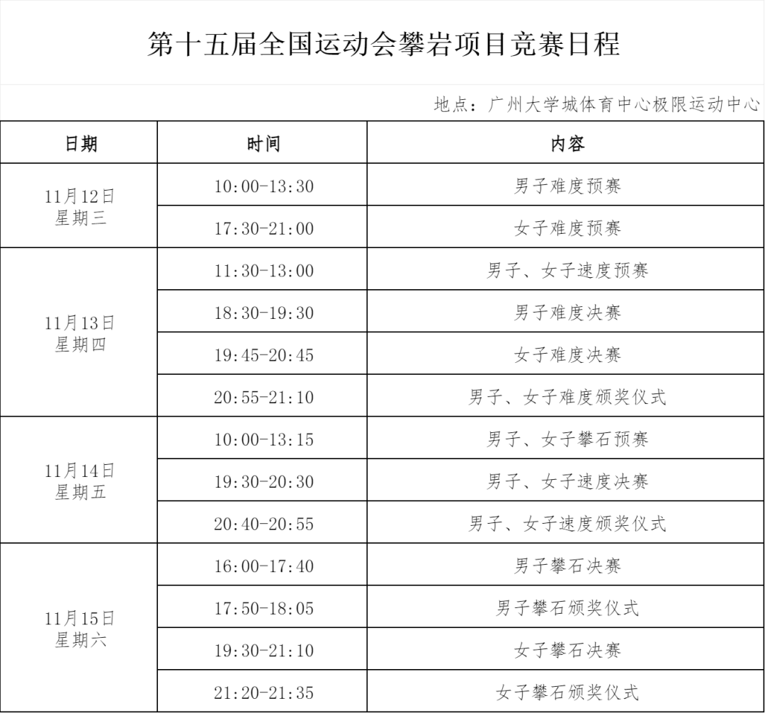 根据活动日程安排,11月2日当天内容丰富多彩。届时,优秀青少年运动员将献上精彩的速度攀岩表演,展现“岩壁芭蕾”的速度与激情。在全民体验环节,速度、难度、攀石三大项目体验区同步开放,并有专业人员在旁指导,保障市民安全体验不同攀岩形式的乐趣。