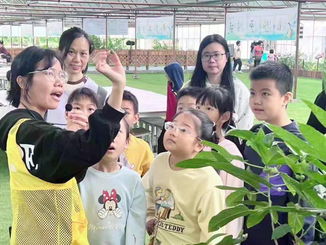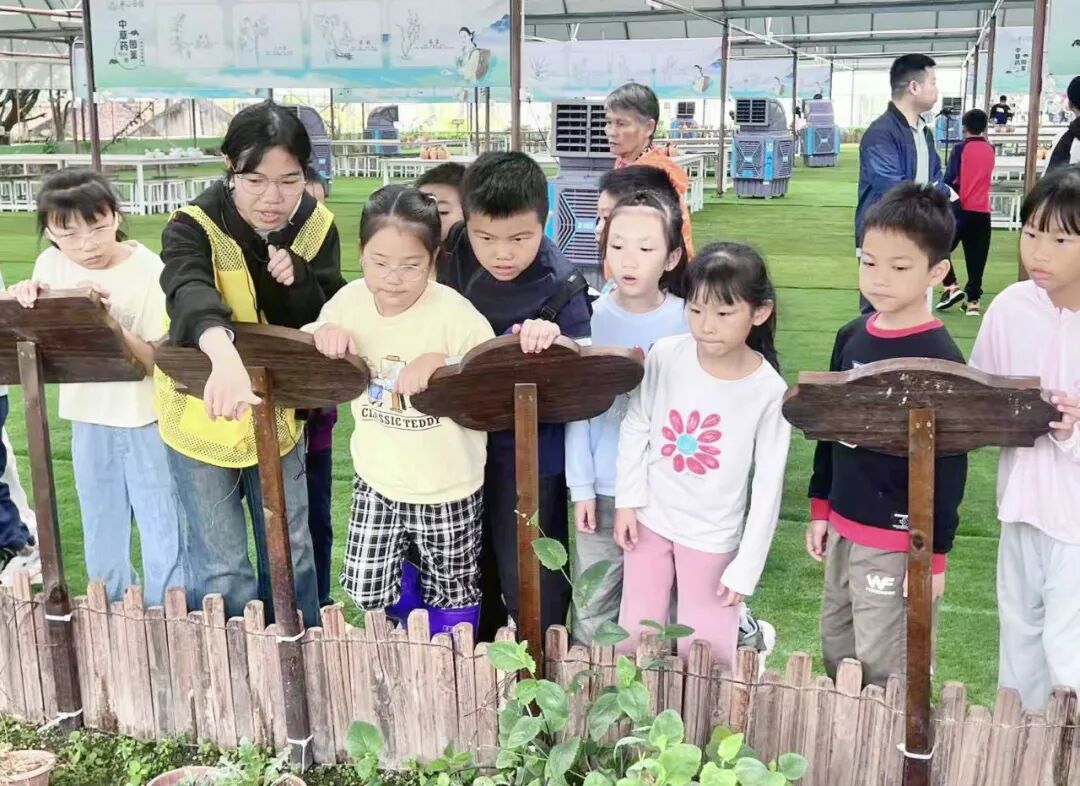 活动中,讲解员带领亲子家庭走进种植区,围绕五指毛桃、广藿香、沉香树及含羞草等特色南药,详细讲解其生长特性与药用价值,生动的讲解让孩子们拓宽知识视野,直观领略中医药文化的深厚底蕴。
