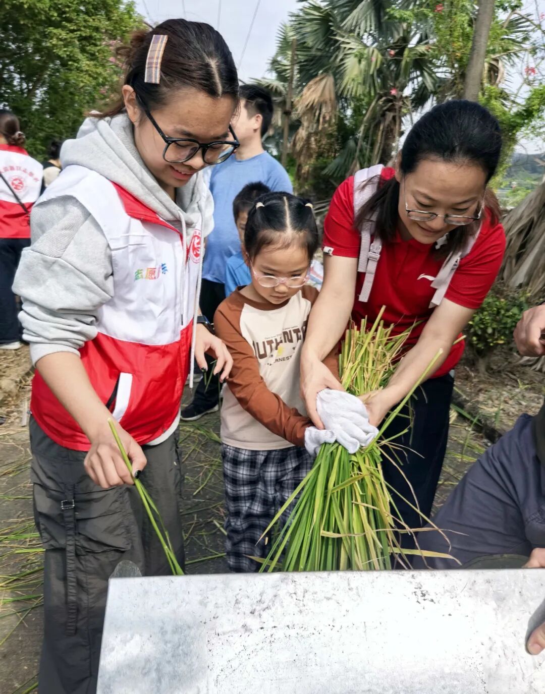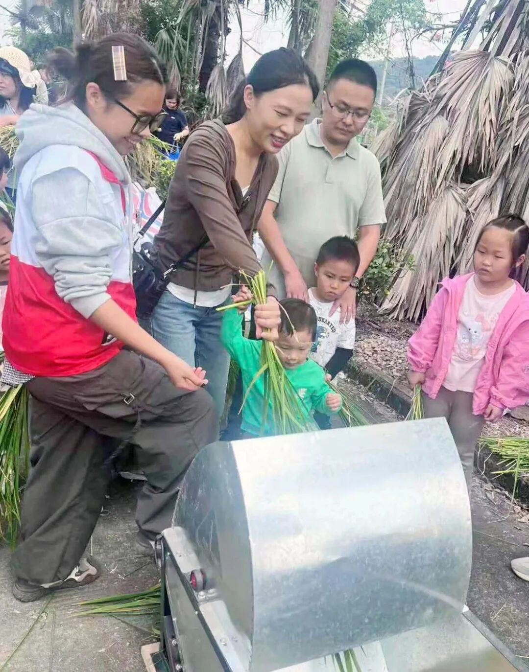 活动由肇庆高新区总工会联合广东省华侨农场农业科学研究所开展,通过南药探秘、水稻科普、收割体验及打谷机操作等环节,让亲子家庭在互动中亲近自然,感受优秀传统文化与农耕文明的魅力。