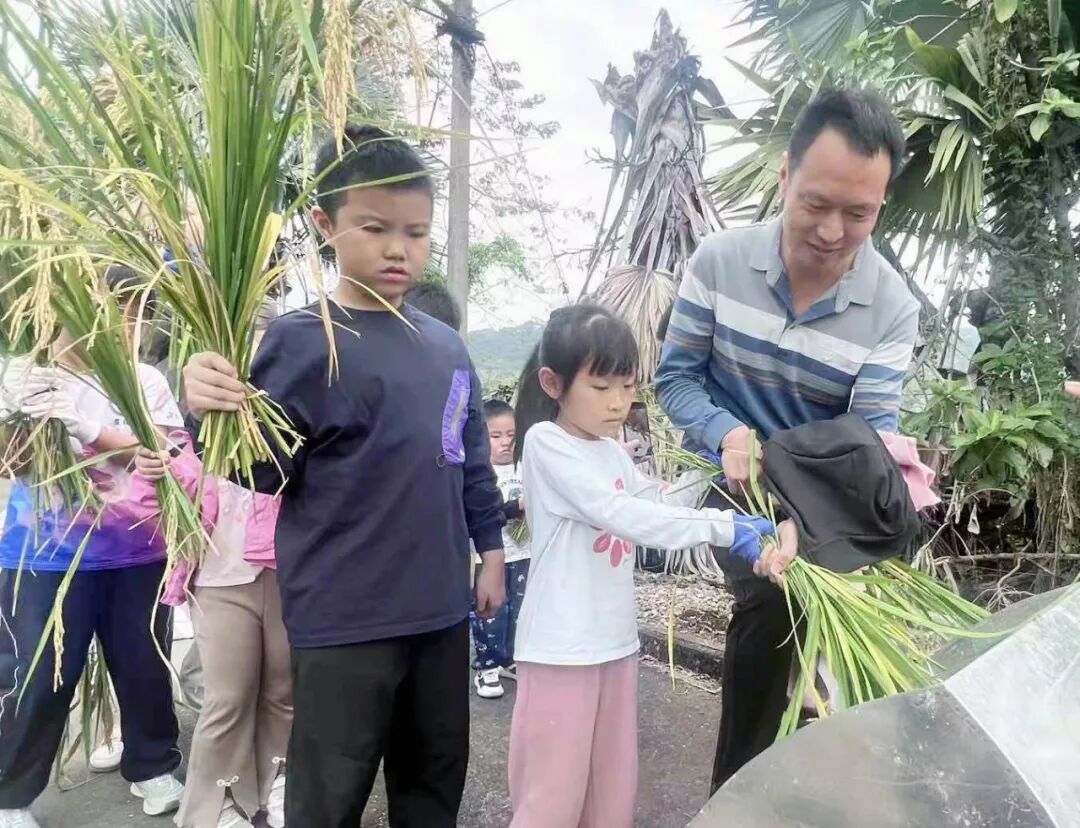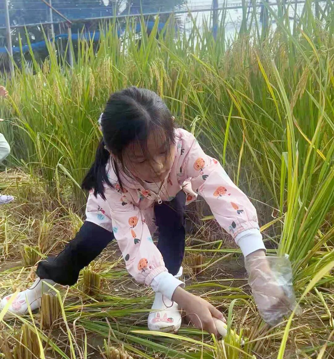 弯腰、割稻、捆扎,攥紧稻穗,对准滚筒送料,一系列动作让孩子们亲身感受农耕的艰辛,深刻理解“粒粒皆辛苦”的含义,通过实践,珍惜粮食、尊重劳动的意识在小朋友心中悄然扎根。