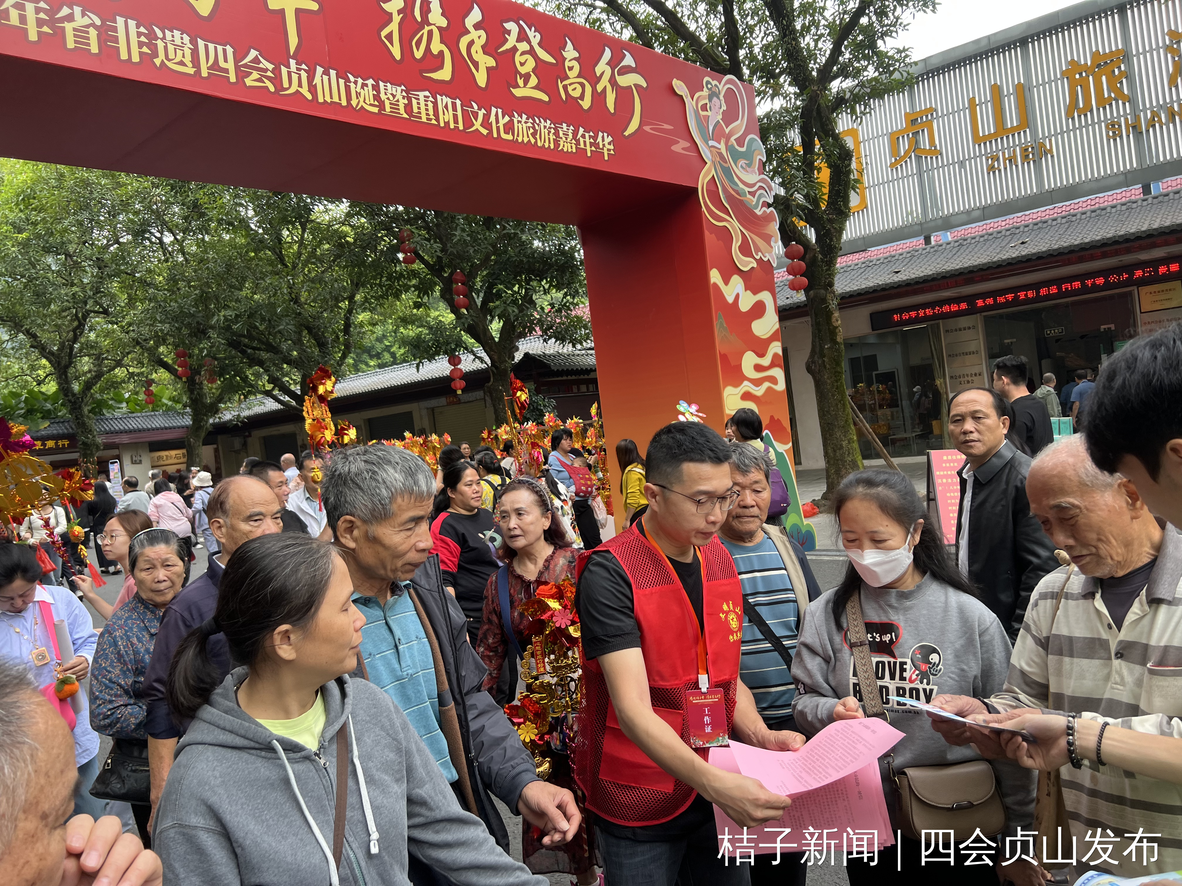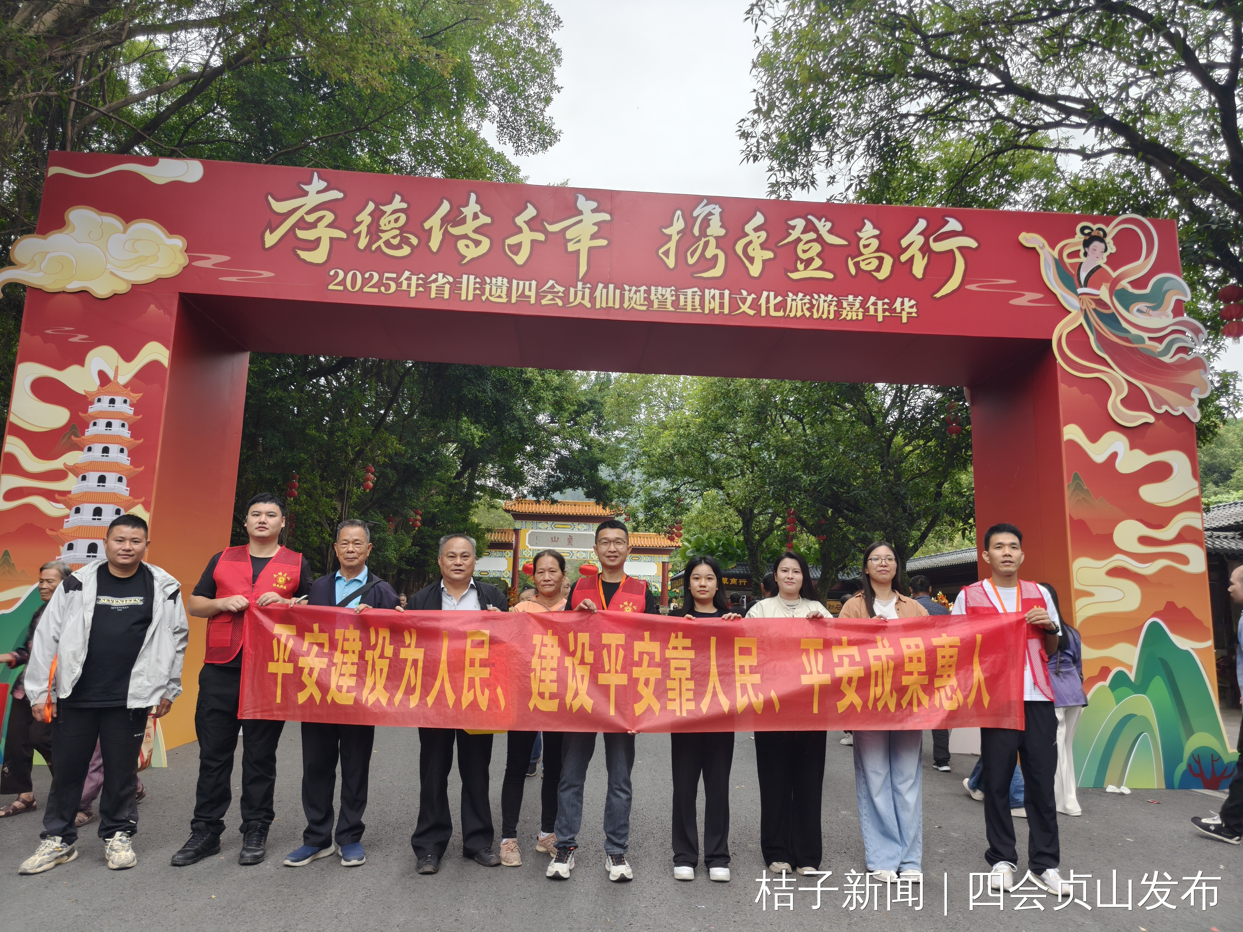 2025年10月29日(农历九月初九),贞山省级旅游度假区旌旗飘扬、锣鼓喧天,2025年省非遗四会贞仙诞暨重阳文化旅游嘉年华在此隆重举行,现场人潮涌动,数万市民游客共襄非遗盛宴。贞山街道巧妙把握这一参与广泛、影响深远的文化良机,将平安建设宣传与省非遗四会贞仙诞、重阳节深度融合,使平安理念伴随非遗文化悄然浸润群众心田。