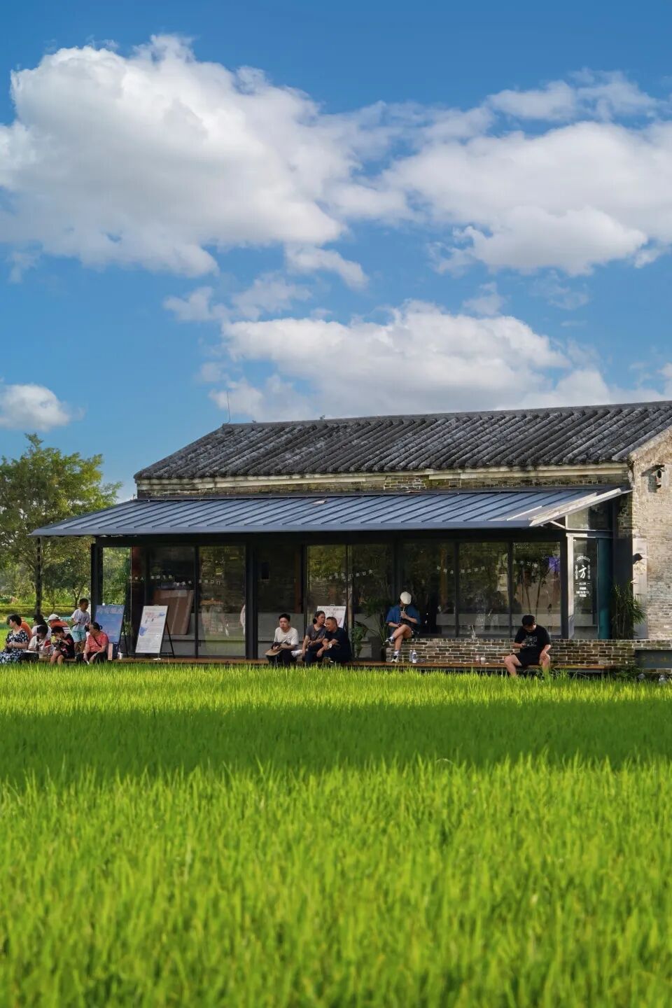 咖啡店被稻田360度环绕,四季风景如画——春是浅绿稻苗,夏转浓翠稻叶,秋换金黄稻浪,冬接褐土远山。