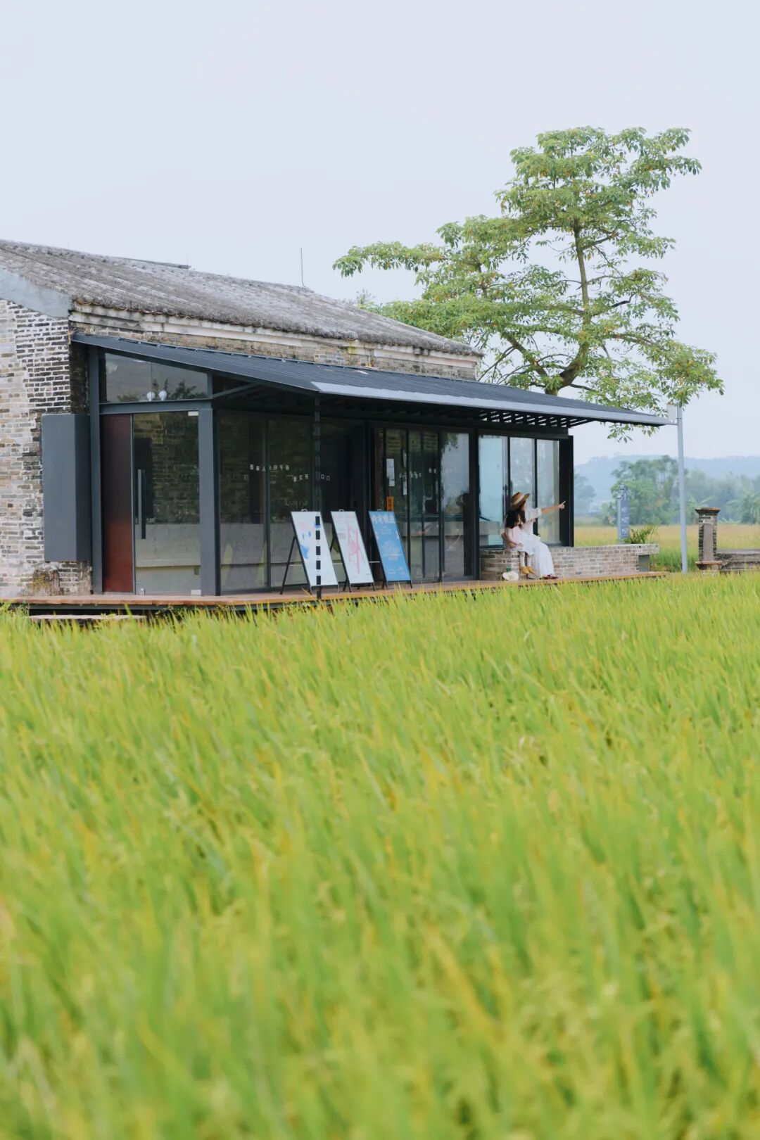 店内的方形玻璃窗,是建筑与自然共筑的取景框,也是最受欢迎的打卡点。窗外稻穗摇曳,游人相伴而行,每一帧都如流动的画面。