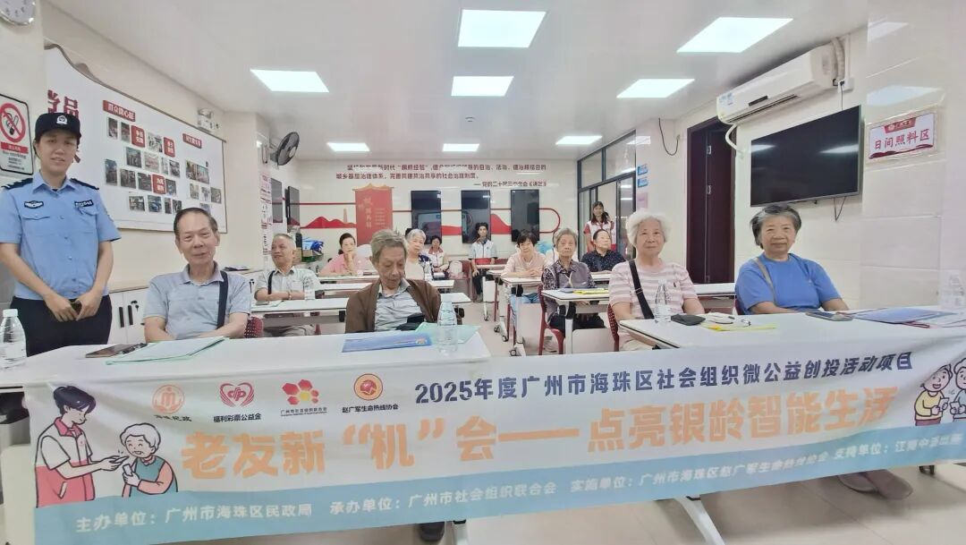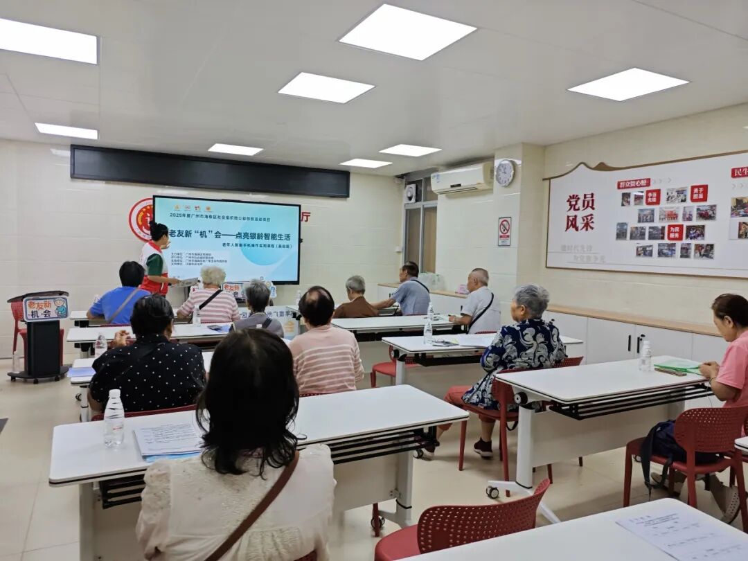 2025年度广州市海珠区社会组织微公益创投活动项目“老友新‘机’会——点亮银龄智能生活”,聚焦广州市海珠区60岁及以上孤寡、独居、空巢、残疾等老人面临的“数字鸿沟”问题,通过8场基础培训班+8场进阶培训班,帮助老年人掌握智能手机基础操作(如通话、网络配置)及核心场景应用(无障碍支付、医疗挂号、社交软件等),并建立“银龄互助小组”提升社交幸福感。