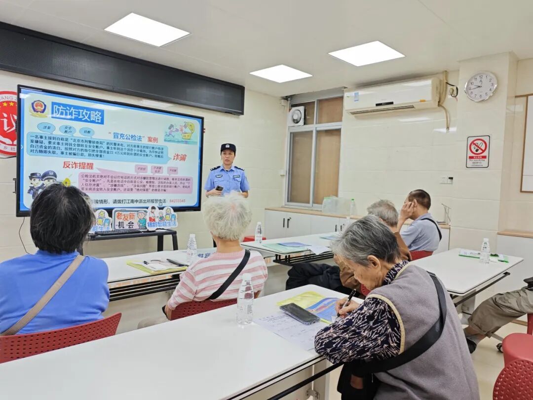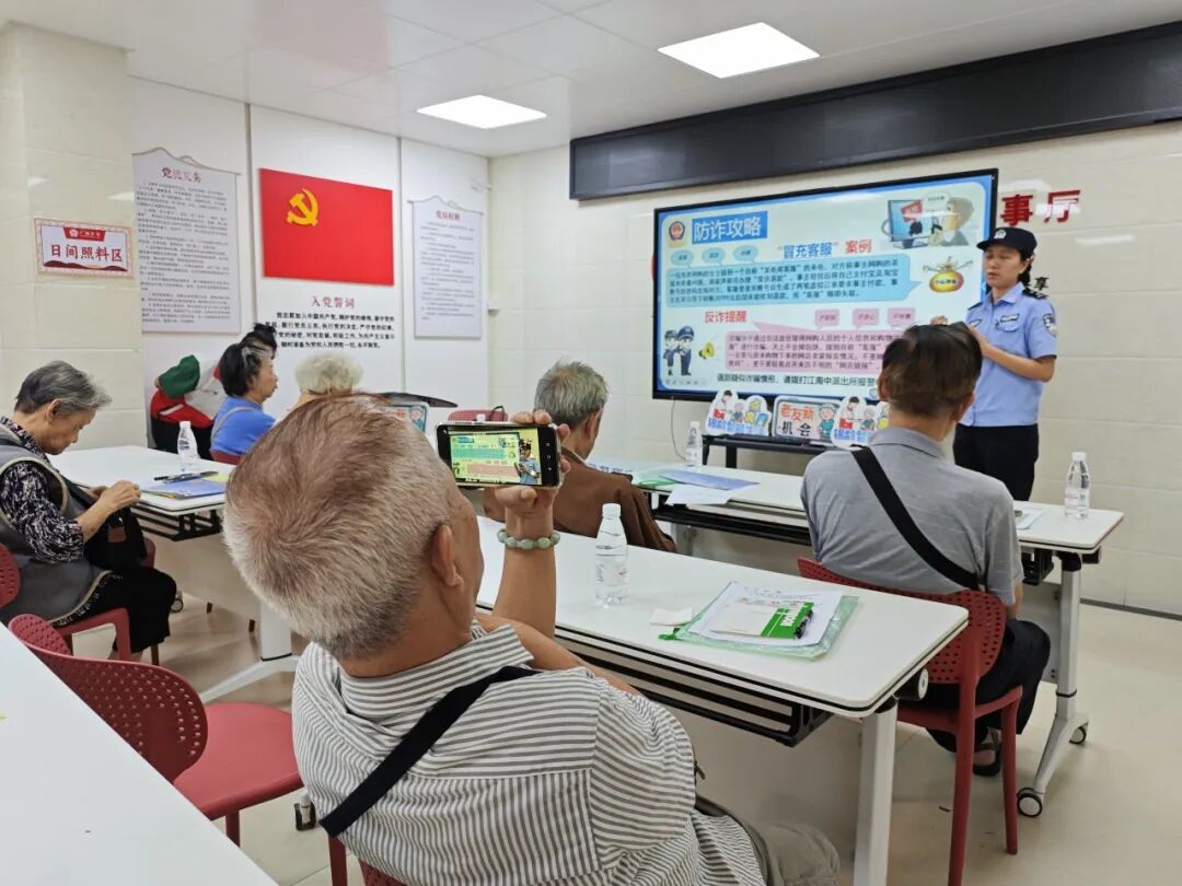 课程特别邀请江南中派出所民警开设“银龄安全课堂”,向老人普及“冒充公检法”“网络刷单”等常见骗局,用通俗易懂的语言讲解识别技巧,并手把手教老人关注“广州反诈”公众号、下载国家反诈中心APP。
