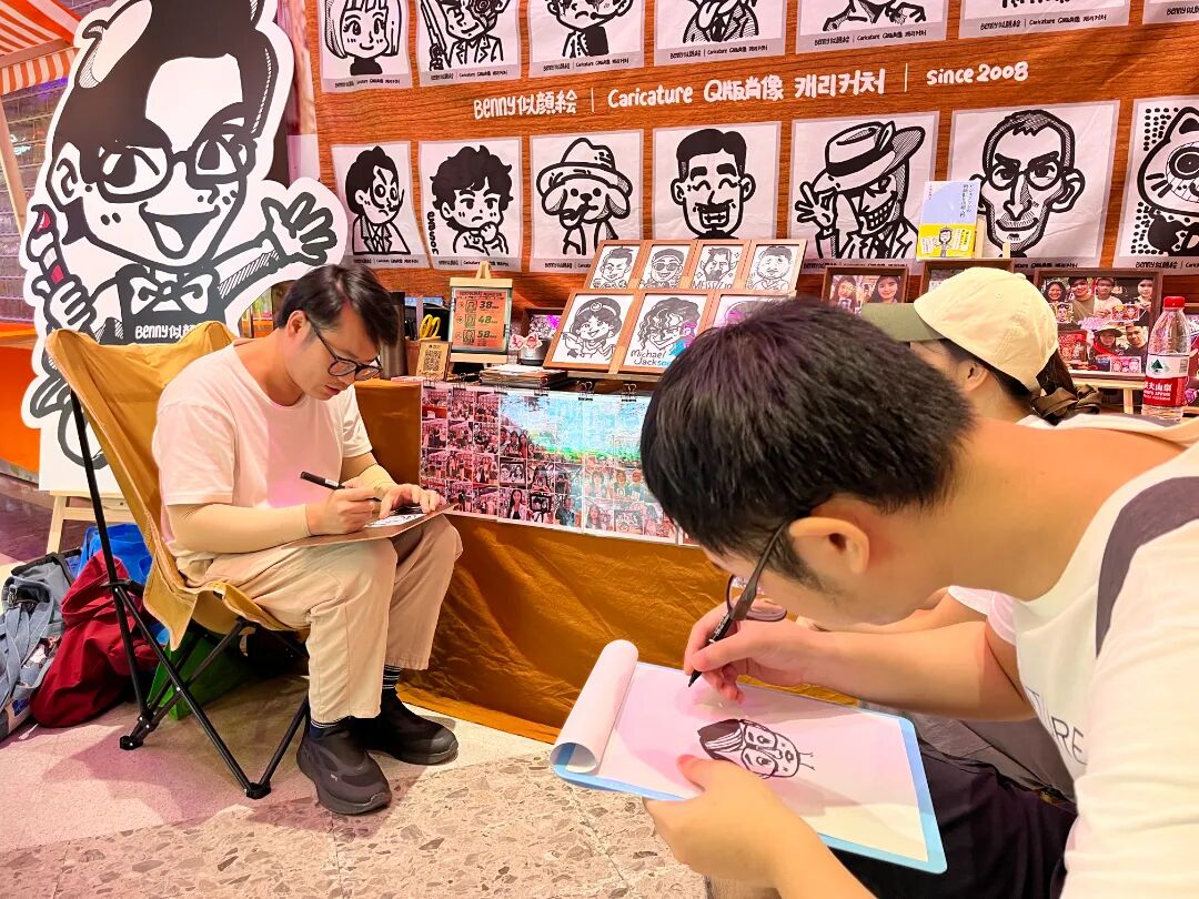 本次活动合作方“Benny似颜绘”,由80后广州绘画师Benny创立于2008年。拥有十多年市集经验的他,曾为周杰伦电影首映礼设计肖像海报。自2025年8月起,其作品更以简约高端的黑白韩风呈现,广受欢迎。Benny始终坚信,绘画服务的真正意义在于通过轻松聊天拉近人心,让被画者感到“被洞察、被看见”。
