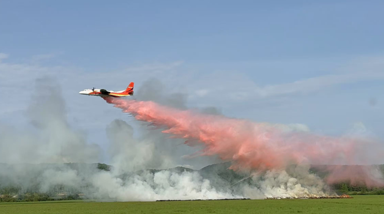 我国经过三年自主攻关研制出的新舟60灭火飞机灭火实战场景。新舟60灭火飞机最大载水量6吨,满载作业半径600公里,填补了森林草原灭火大飞机的空白和短板。应急管理部供图