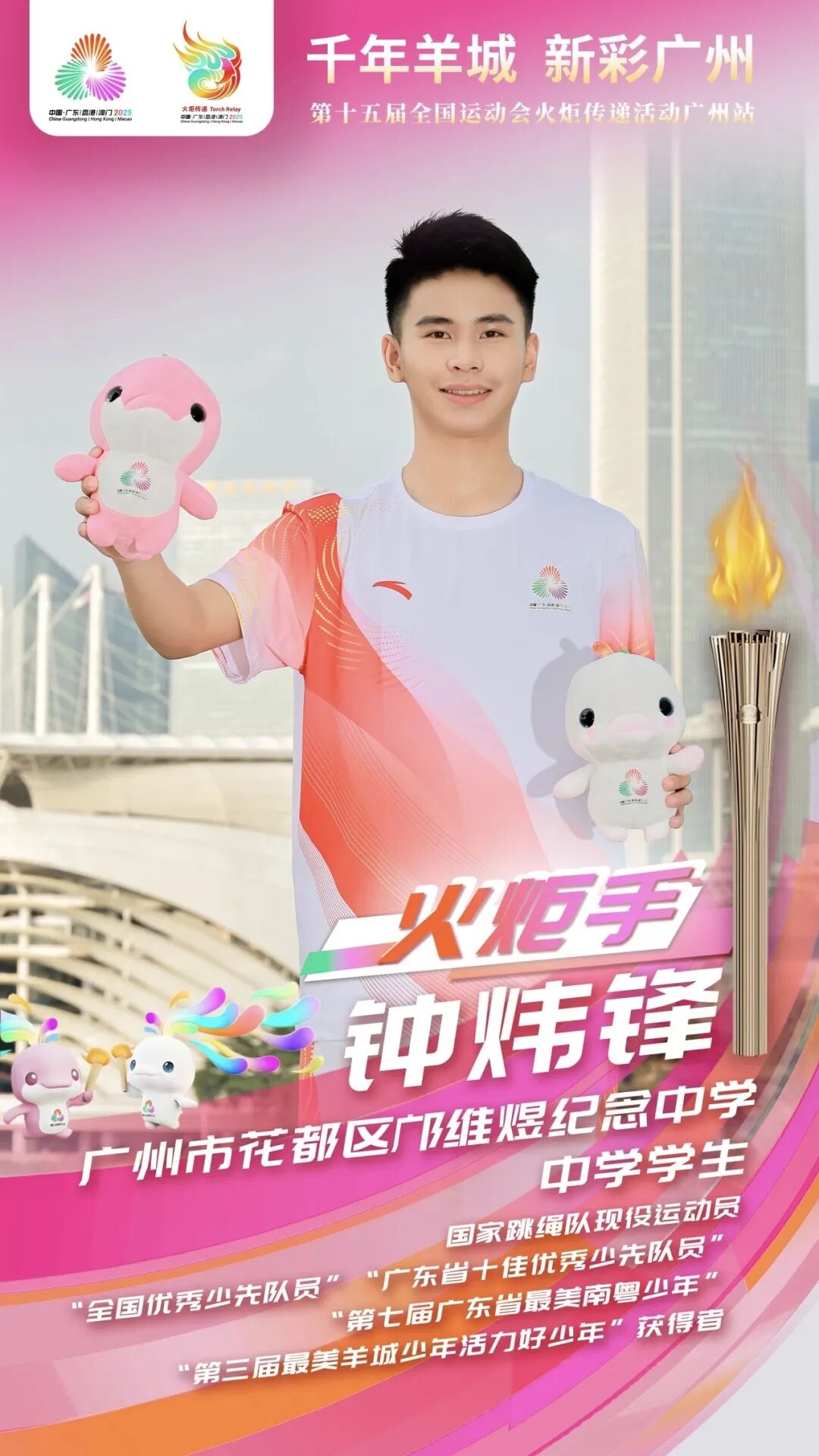 “掌心传递的不只是火炬,更是榜样的力量,让我真切感受到少年奔赴未来的意义。”11月2日,第十五届全国运动会火炬传递广州站现场,来自广州市花都区邝维煜纪念中学的16岁的钟炜锋作为广州站最年轻的火炬手,完成了第23棒传递。这位刚在世界跳绳锦标赛上两次刷新世界纪录的高二少年,用坚定的步伐将体育精神与青春梦想融为一体,在火炬传递的荣光中,开启了人生新的成长征程。