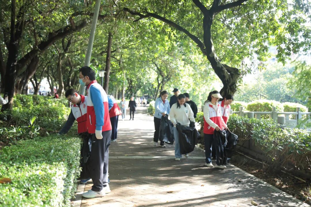 随着一声“出发”令下,大家沿着大旺公园外围主干道、绿化带及停车区域展开“绿色捡跑”活动,穿梭在斑驳树影间,俯身拾起灌木丛中的奶茶杯、纸屑,长椅缝隙的包装袋、烟头等,并认真区分垃圾类别。活动结束后,大家将分类好的垃圾统一运送至处理点。