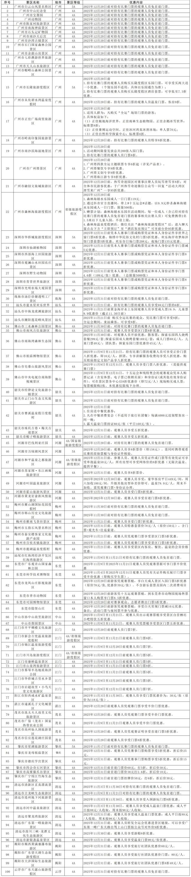 为营造“全民全运、共享盛事”的良好氛围,全省超过100家4A级旅游景区和省级以上旅游度假区同步面向观赛游客推出形式多样的游览优惠,包括门票折扣、联票套餐及特色体验活动,让广大观众在观赛之余,能够轻松畅游广东,深入感受岭南文化的独特魅力。