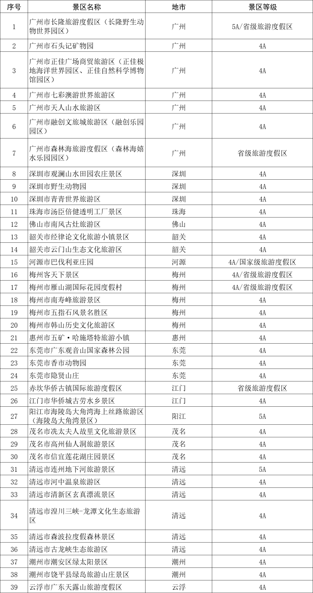 1.本名单包括4A级以上旅游景区和省级以上旅游度假区;