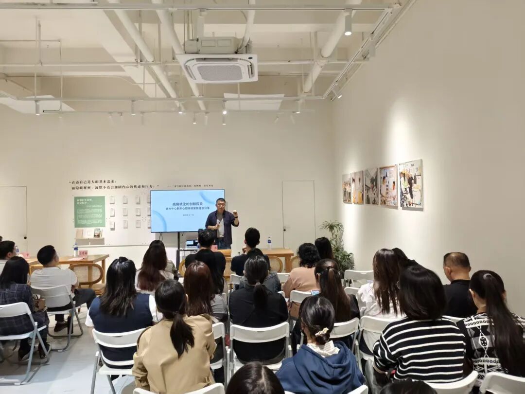 在温馨的咖啡氛围中,广州市合木残障公益创新中心理事长、社会企业手心咖啡联合创始人曲栋向参访者生动讲述了“手心咖啡”从蓝图变为现实的历程。他分享了如何通过公益创投、社会资金等支持,逐步构建起一套涵盖技能培训、融合性就业及市场运营的完整支持体系,真正为视障群体开辟出一条稳定、有尊严的职业发展道路。他的分享不仅是一个项目的介绍,更是一次关于“公益初心、商业思维与社会价值如何有机结合”的深刻启迪。参访者们通过聆听创始人的一手故事,切身感受到了公益创投所能激发的巨大社会潜能,也感受到做公益不但要有初心,也要有宣传设计的理念,把“好声音”传播出去。