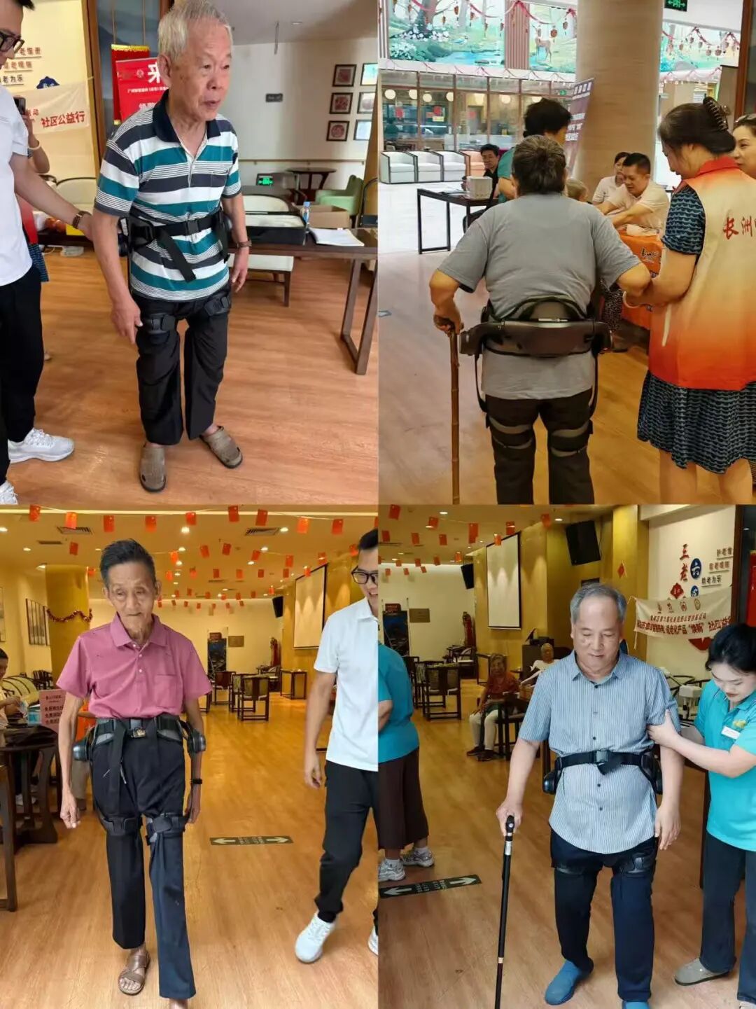 本次活动的核心在于让长者零距离接触智慧康养设备。艾灸椅体验区内,工作人员正向长者们详细介绍其无烟明火、温经通络的原理。刚刚听完歌曲的长者们有序上前体验,感受科技带来的舒适与温暖。而在助行外骨骼体验区,这款旨在提升行动能力的设备吸引了众多目光。工作人员耐心协助长者穿戴,并讲解其智能助力的原理。一位体验后的长者感慨:“腿上像是多了一股支撑的力量,走路确实省力了不少,科技真是越来越贴心了。”